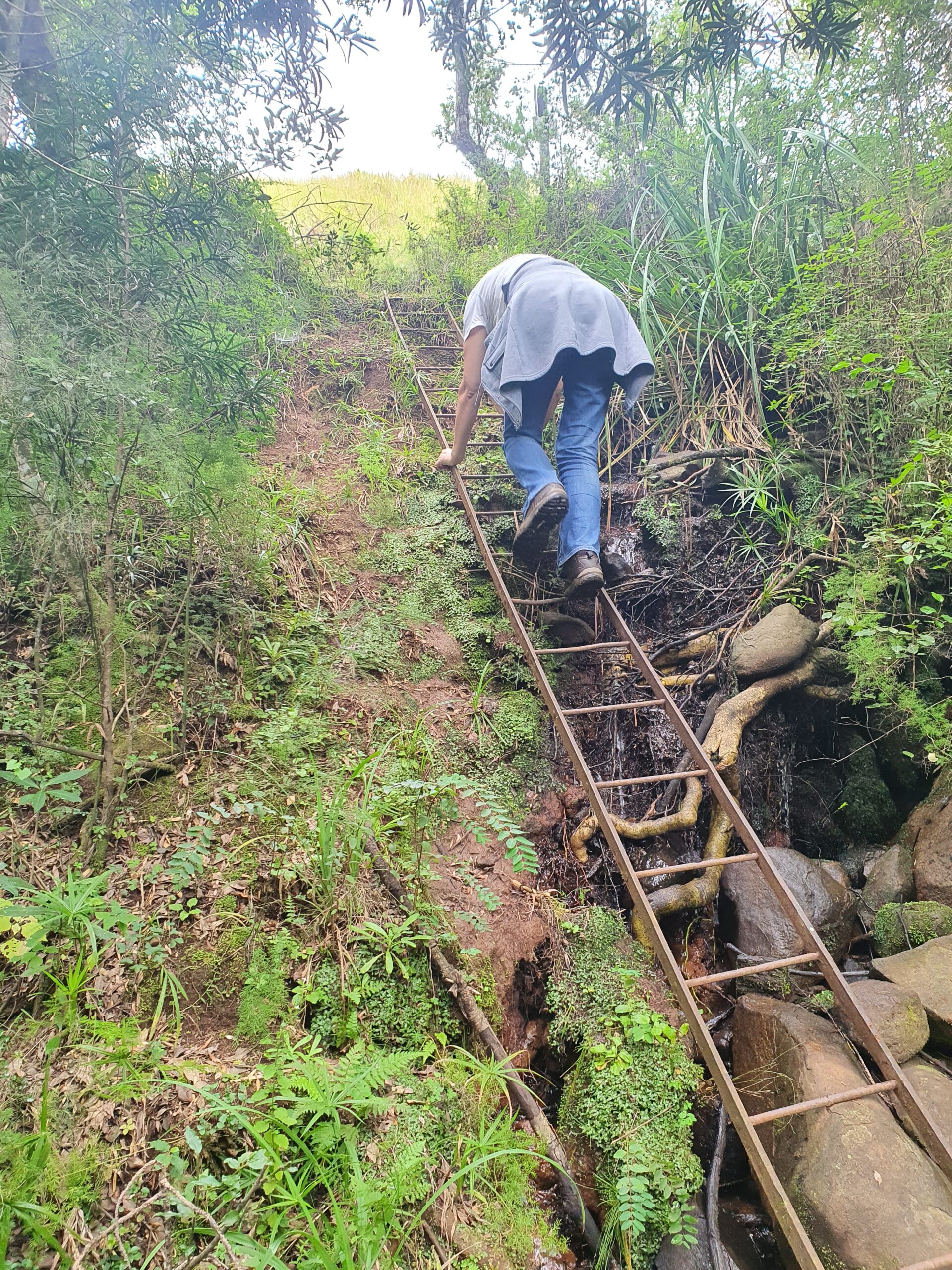 Unfortunately, James and I only got to enjoy the Lourie’s Flight trail – a relatively easy circular route with some boulder hoping over streams. We enjoyed strategising our way across the streams – looking for the driest rocks within reach, steadying ourselves on tree branches as we went. At the apex of the trail, we had the choice of turning back or taking the metal ladder up out of the stream. We decided on the latter and returned to camp via the Pass Trail.