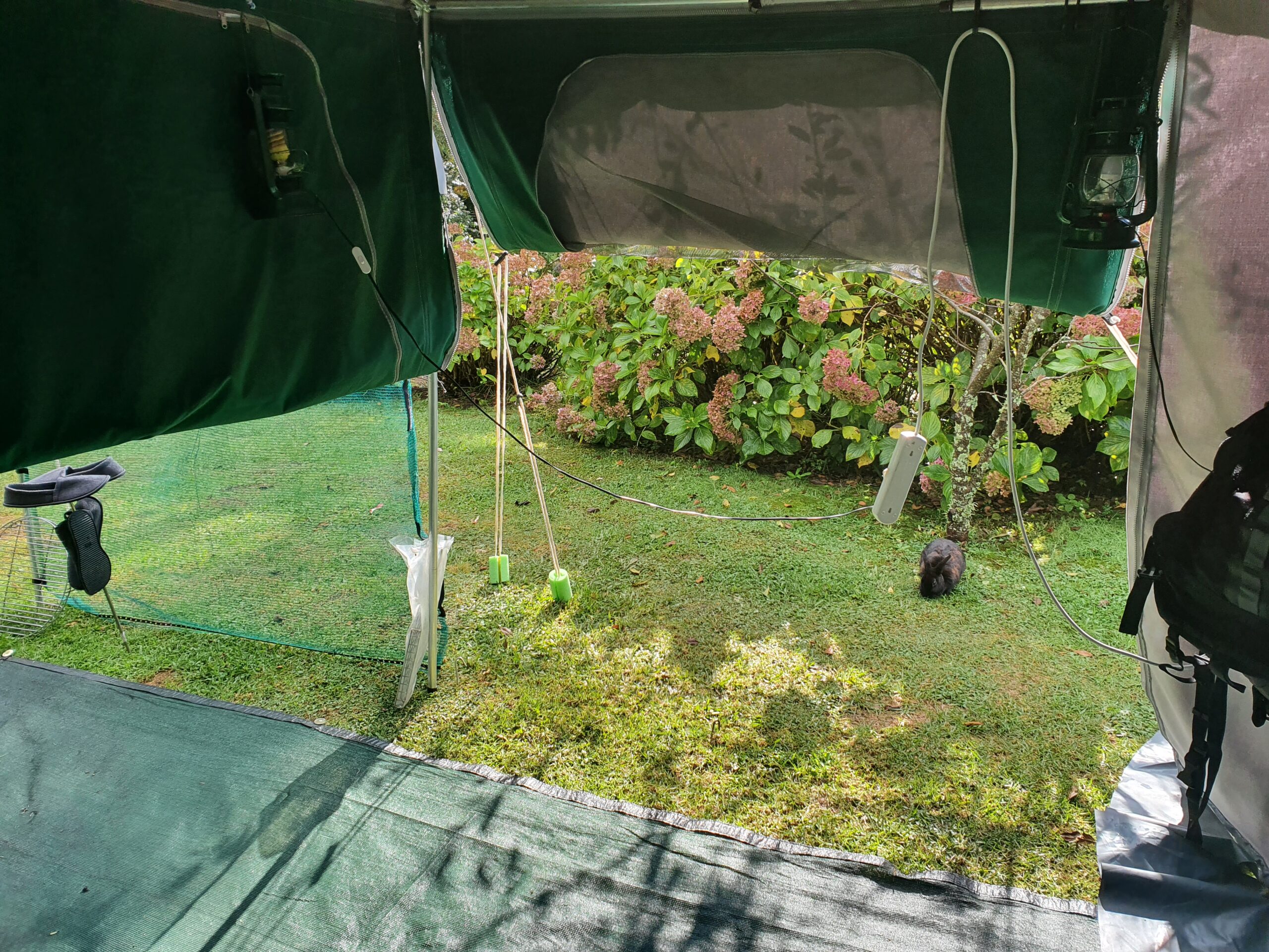 Three mountain streams flow through the farm. A beautiful oak tree (now around 180 years old) stands guard over the camp sites. Free-roaming bunnies lazily chew on the grass, apparently unconcerned by campers setting up their tents!